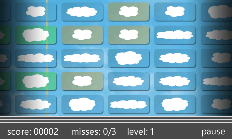 It’s a fairly simple game, cards with clouds on them drift across the screen from right to left and you have to tap on the two that match in each column before they reach the gold line.